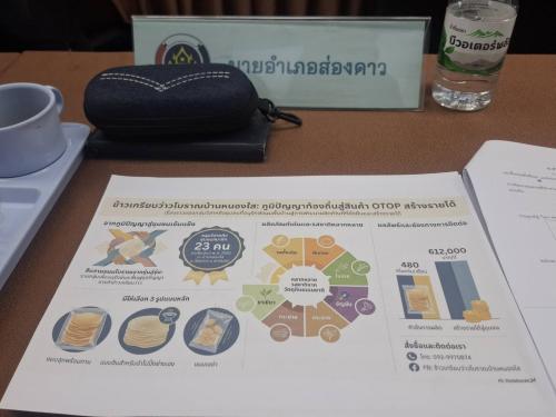 ในการนี้ พัฒนาการอำเภอส่องดาว ได้นำเสนอผลการดำเนินงาน กลุ่มข้าวเกรียบว่าวโบราณบ้านหนองใสแก่ที่ประชุมทราบ