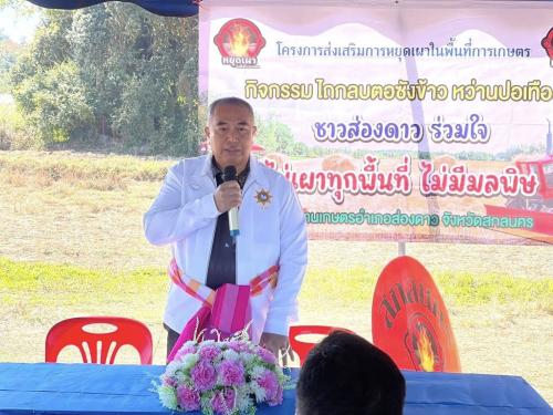 วันพุธที่ 7 มกราคม 2569 เวลา 09.30 น. นายเอกภพ โสภณ รองผู้ว่าราชการจังหวัดสกลนคร กำกับดูแลการปฏิบัติราชการพื้นที่อำเภอส่องดาว เป็นประธานพิธีไถกลบตอซังข้าวเพื่อป้องกันปัญหาฝุ่น (PM2.5) ณ บ้านทันสมัย หมู่ที่ 7 ตำบลส่องดาว อำเภอส่องดาว จังหวัดสกลนคร โดยมีวัตถุประสงค์เพื่อสร้างความตระหนักให้เกษตรกรทำการเกษตร โดยงดการเผาเศษวัสดุเหลือใช้ทางการเกษตร ส่งเสริมการทำเกษตรที่เป็นมิตรต่อสิ่งแวดล้อม ตามมาตรการบริหารจัดการและแก้ไขปัญหาฝุ่นละอองขนาดเล็กไม่เกิน 2.5 ไมครอน (PM2.5) โดยมี หัวหน้าส่วนราชการ ผู้บริหารสถานศึกษา ผู้บริหารองค์กรปกครองส่วนท้องถิ่น กำนัน ผู้ใหญ่บ้าน พนักงานราชการ พนักงาน/เจ้าหน้าที่ เข้าร่วมกิจกรรมดังกล่าวอย่างพร้อมเพรียงกัน