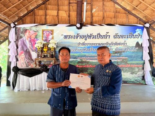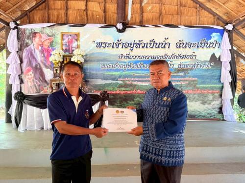 ณ โครงการพัฒนาและฟื้นฟูสภาพพื้นที่โครงการป่ารักษ์น้ำอันเนื่องมาจากพระราชดำริ บ้านถ้ำติ้ว อำเภอส่องดาว จังหวัดสกลนคร เพื่อน้อมรำลึกในพระมหากรุณาธิคุณอันหาที่สุดมิได้ และเชิดชูเกียรติผู้นำอาสาพัฒนาชุมชนดีเด่น